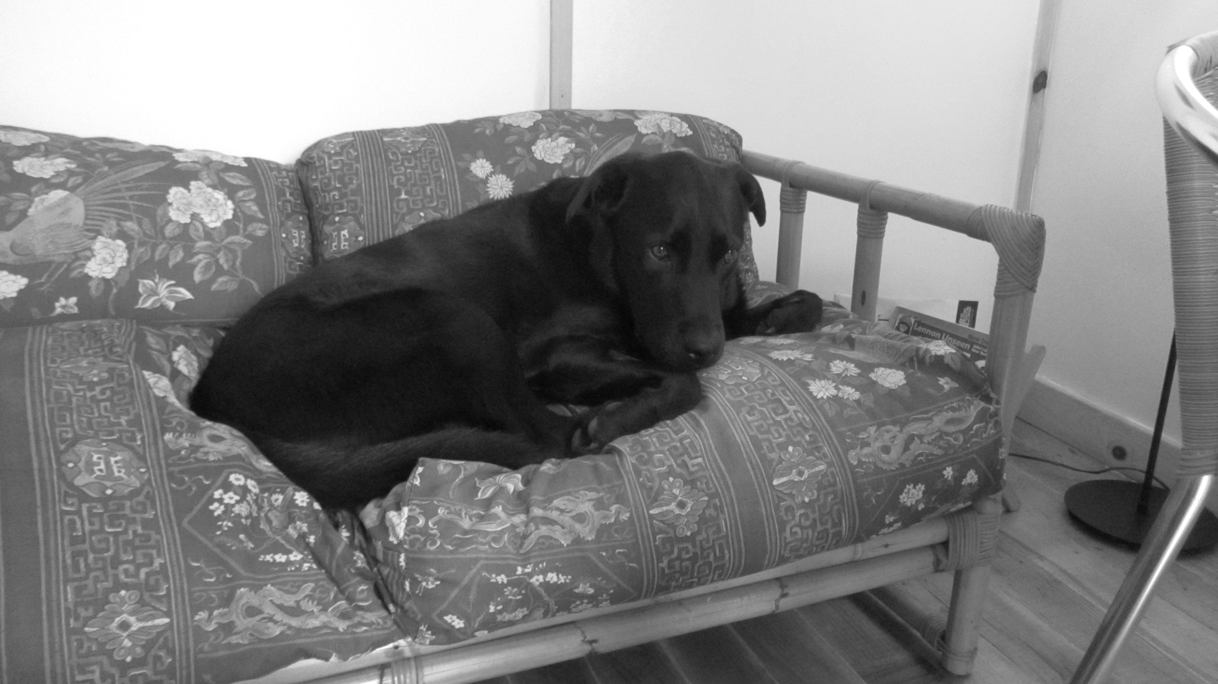 My desk is not so ordered as Murakami’s, but it is quite tidy. I am surrounded by things which I like. Pictures of Plath, a Morrissey coaster for my cups of tea, lamps, a Mark Rothko gallery of postcards, little boxes full of stationery that I love but never use, books, rugs, a sofa (always commandeered by my dog, George), a wicker chair to sit in, a kettle, a heater for cold days, candles. It is here that I write. When I get tired and need a break or want to read, I squeeze up on the sofa with George.