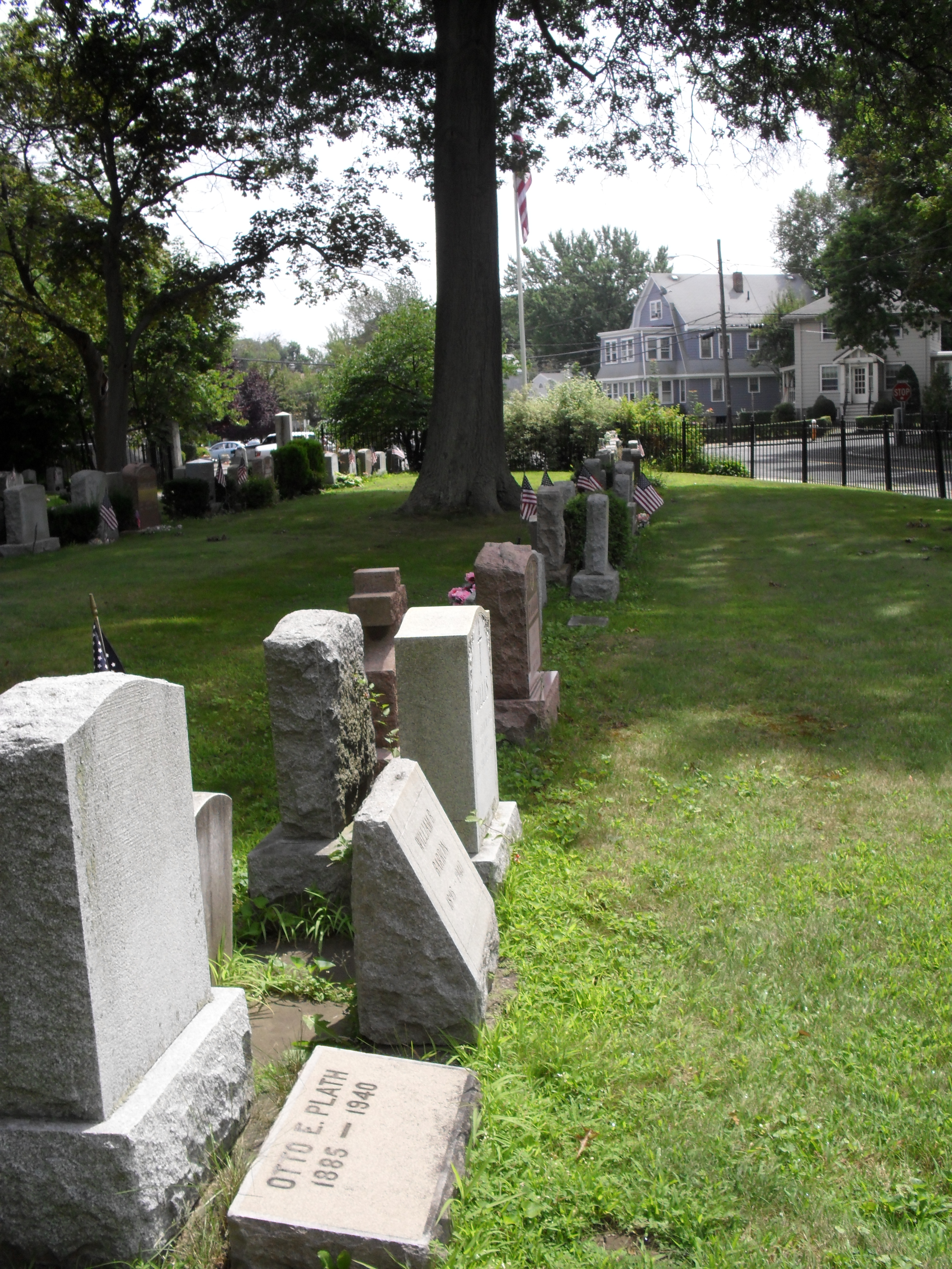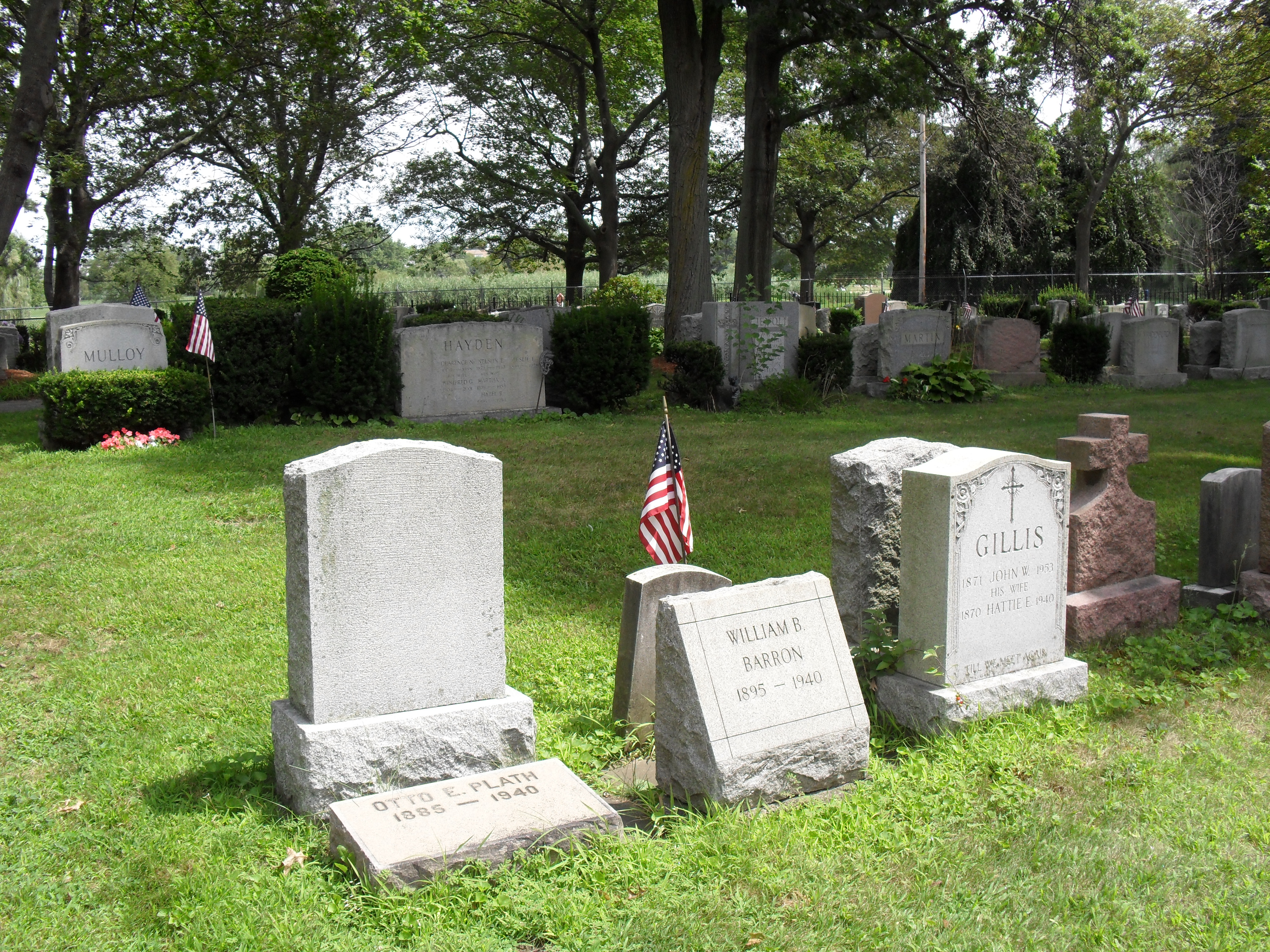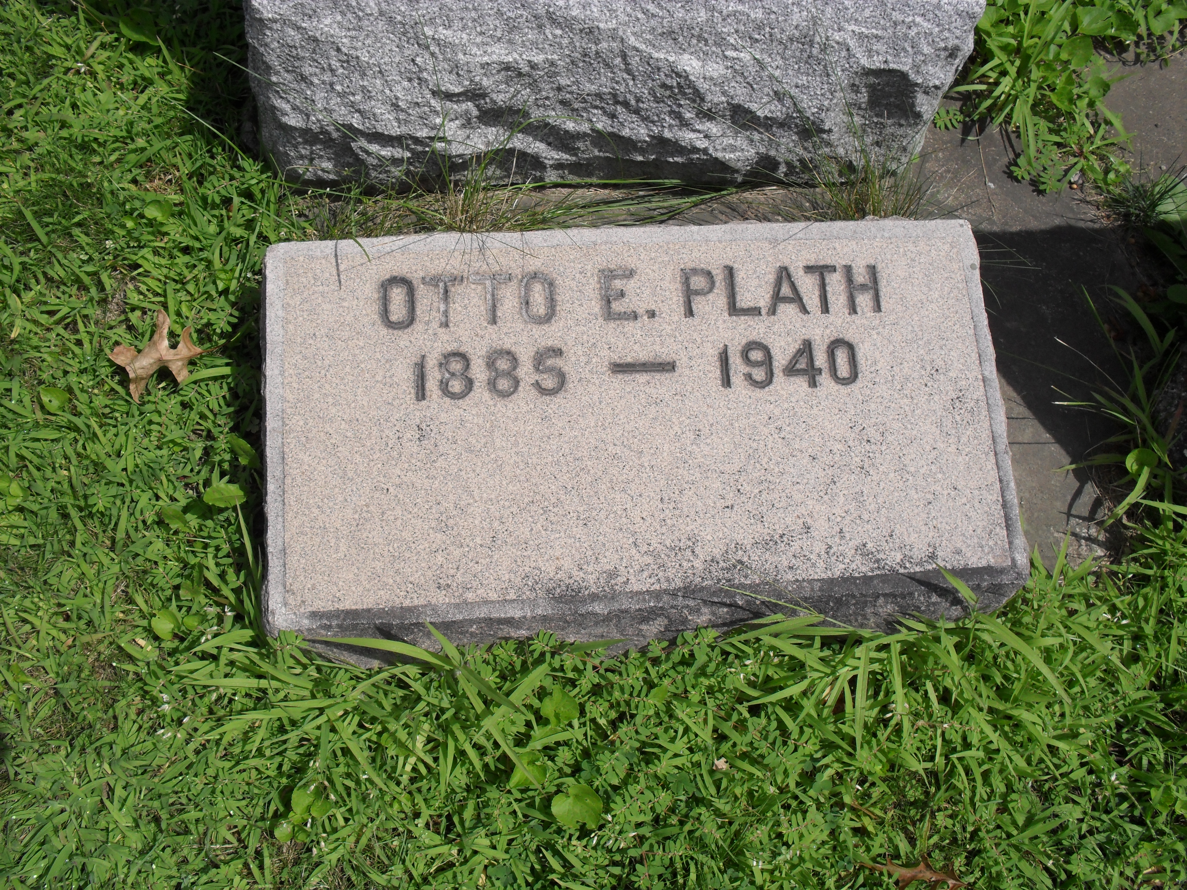 A clear blue day in Winthrop. Went to my father’s grave, a very depressing sight…In the third yard, on a flat grassy area looking across a sallow barren stretch to rows of wooden tenements I found the flat stone “ Otto E. Plath: 1885-1940”, right beside the path, where it would be walked over. Felt cheated. (Journals p. 473)