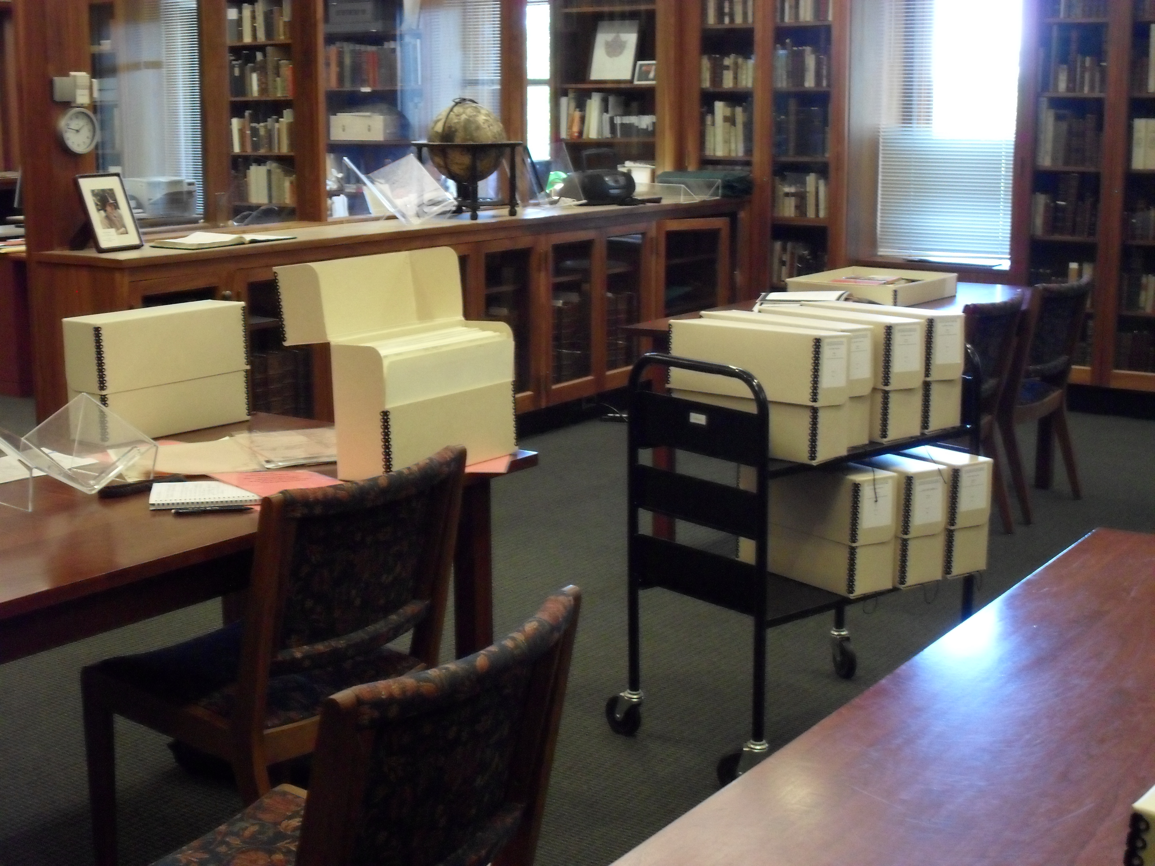 Plath’s elm writing deskPlath’s 1962 Letts CalendarPlath’s address bookPlath’s travel guidesPlath’s copy of LawrencePlath’s German Review with stab marksMortimer Rare Book Reading RoomPlath’s girl scout uniformPlath’s prom dressPlath’s booksWorking desk in the archivePlath’s journalPlath’s typewriterDecorated waste basket by Plath